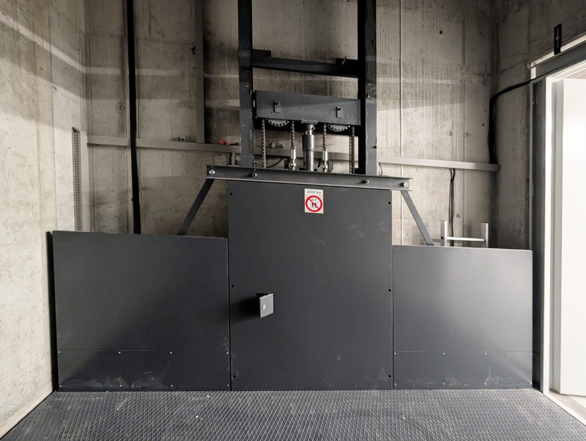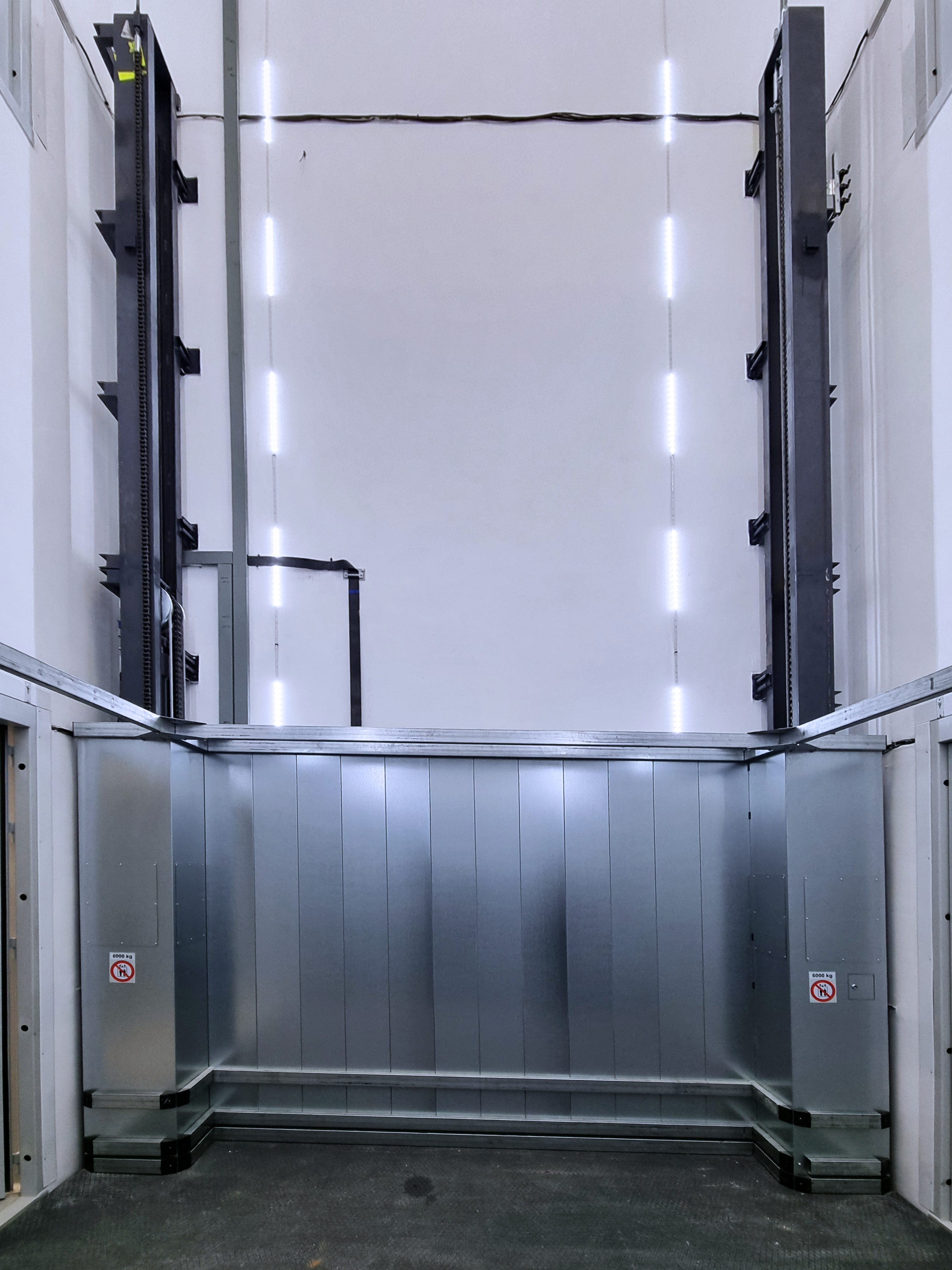 Este elevador es adecuado para transportar una amplia variedad de mercancías pesadas, como materiales industriales, palets de grandes dimensiones y maquinaria, gracias a su robustez y capacidad de carga.